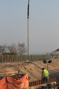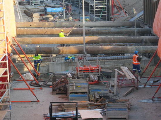Net op tijd om nog een glimp op te vangen van het transporteren van het laatste bekistingspaneel naar de tunnelmuur achteraan rechts….