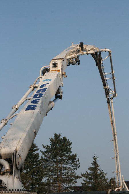 Met behulp van de super hijskraan is er net een baal materiaal afgeleverd, vlak achter de linkerwand…. Zo’n hijskraan is in dit soort situaties echt onmisbaar….